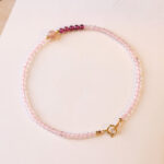 Rose Quartz Healing Energy Bracelet features ultra-thin beads of Rose Quartz, Garnet, and a larger Strawberry Quartz bead. Rose Quartz is known for its association with love and harmony, while Garnet promotes vitality and passion. The Strawberry Quartz bead adds a touch of warmth and joy. This bracelet is designed to promote healing, emotional balance, and positive energy flow.