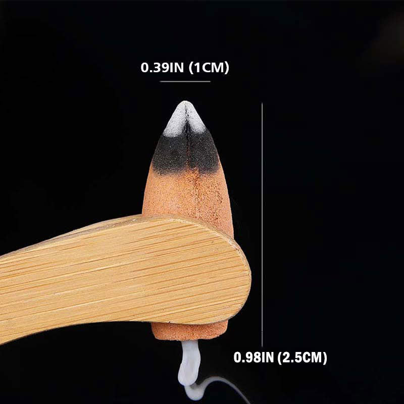 - Incense Size: Cone Size: 0.39*0.98 inches (1*2.5cm), Burning Time: about 10 minutes. Scents: Sandalwood, Lily, Carnation, Osmanthus, Mint, Lavender, Cape Jasmine, Rose, Ocean, Wormwood