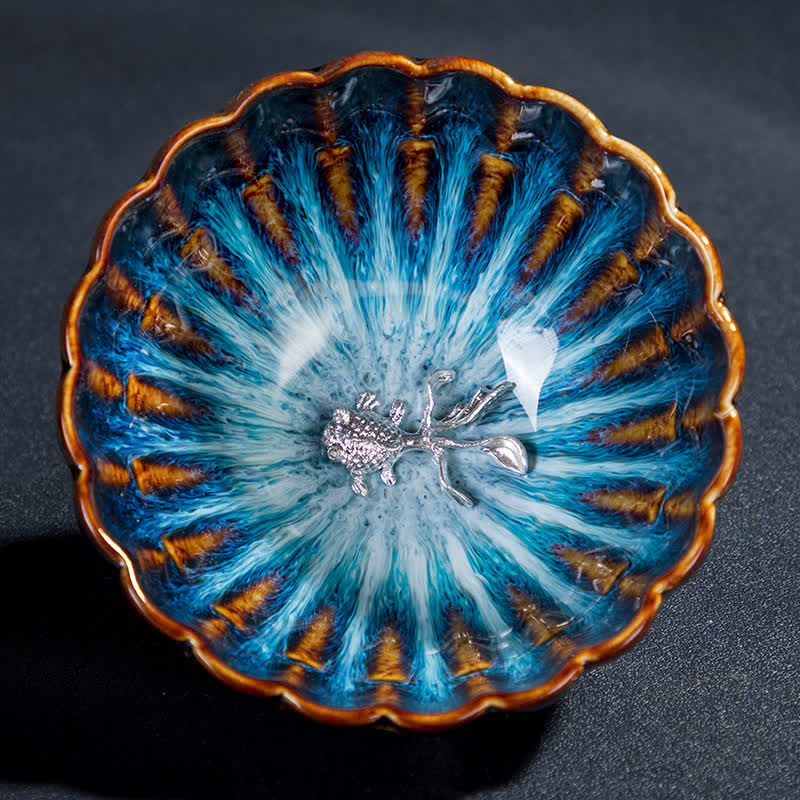 Lotus Goldfish Auspicious Dragon Phoenix Ceramic Teacup Inlaid Tea Cups 130ml