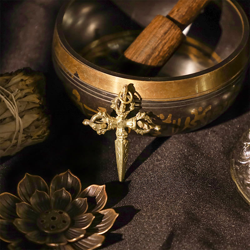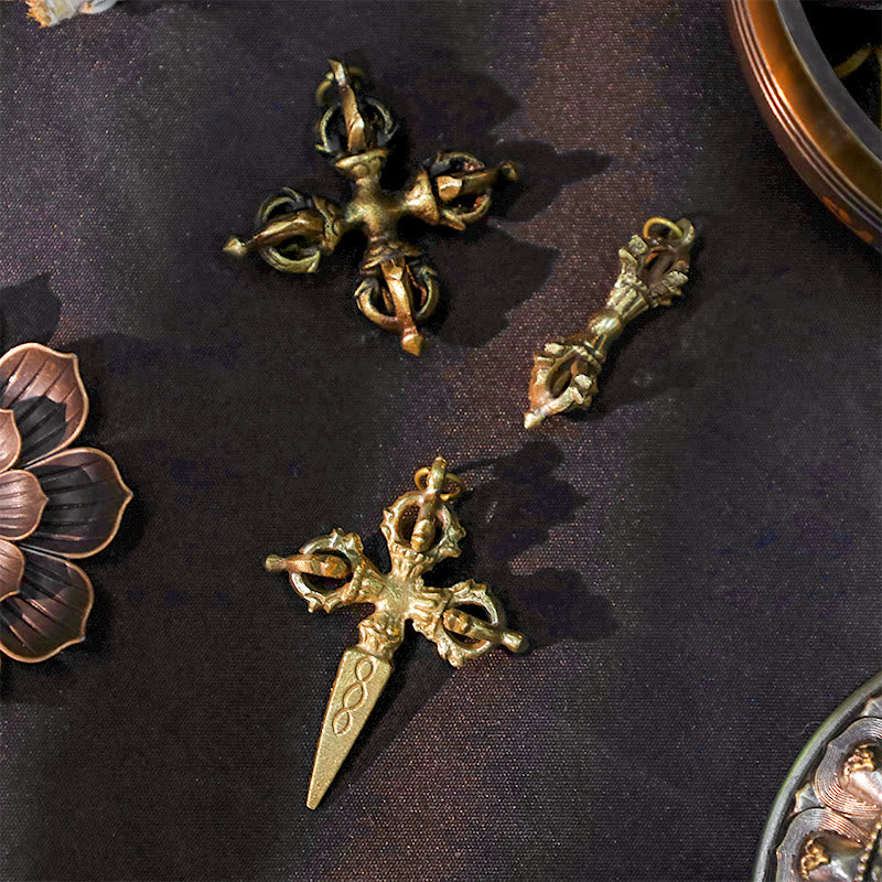 Vajra is a five-pronged ritual object used in Buddhist ceremonies in Tibet. It symbols the properties of a diamond (indestructibility) and a thunderbolt (irresistible force). As a symbol for the properties of a diamond, vajra signifies indestructibility as diamonds are the hardest of stones. As a symbol for the thunderbolt, vajra represents the irresistible force. It denotes cutting through ignorance since the god Indra kills ignorant persons with this weapon.