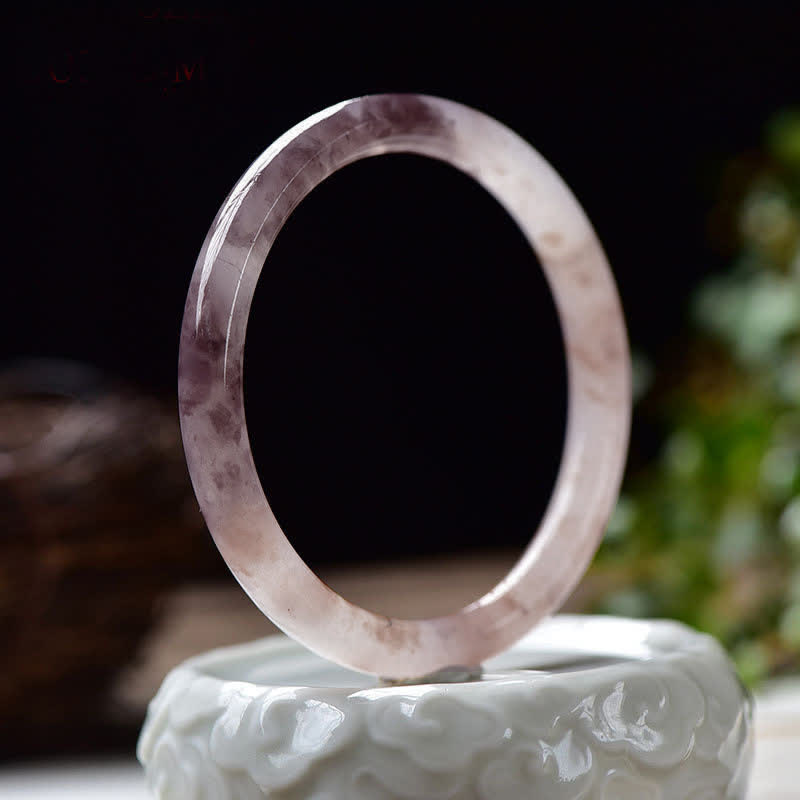 The Purple Golden Silk Jade Wealth Bracelet Bangle is a piece of jewelry made from Purple Golden Silk Jade stones that are believed to have calming and healing properties. It is designed to be worn as a bracelet bangle and is said to promote tranquility, balance, and peace of mind.