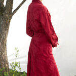 The robes are long and must be gathered at the waist and fastened with a band. The wearer can expose either their right arm or both arms if it’s hot (sometimes, it is said that they like this for the convenience of working in the field). The two sleeves will be removed, and the robe can be worn as bedclothes at night. Most people typically wear shirts inside the robe.