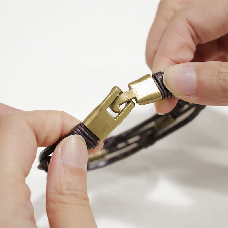 The Buddha Stones Vintage Leather Wrist Band Brown Rope Layered Bracelet Bangle is a unisex bracelet made of high-quality leather and copper. The copper material helps in grounding and transferring vibration frequencies and brings positivity, luck, and wealth to the wearer. The bracelet is handmade, naturally environmentally friendly, and perfect for balancing and healing.